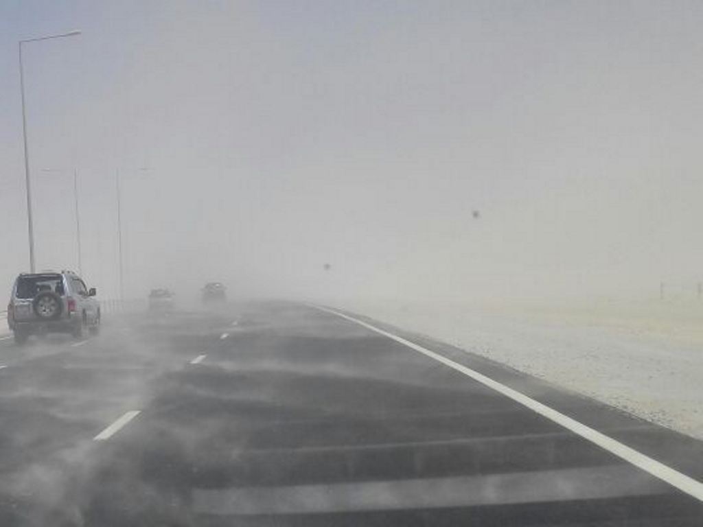 AlBawarih winds, which are typical during this time of the year, cause low visibility on most areas due to rising and blowing dust.