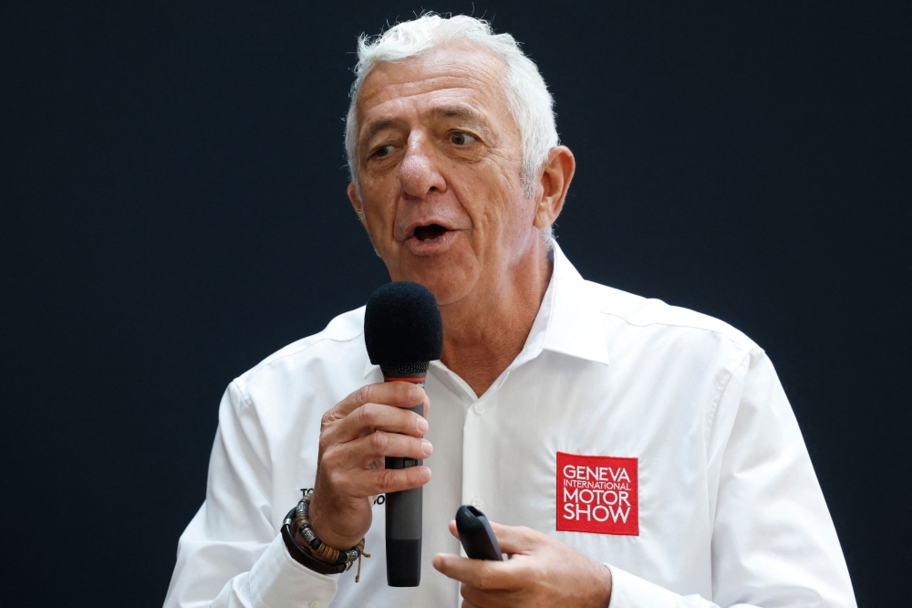 Frank Rinderknecht, founder and CEO of Rinspeed, speaks during a press conference in Doha on October 1, 2023.