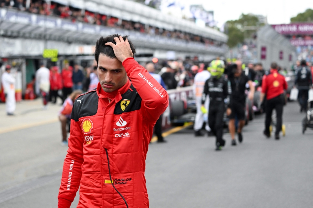 Ferrari's Spanish driver Carlos Sainz Jr reacts after the qualifying session of the 2023 Formula One Australian Grand Prix at the Albert Park Circuit in Melbourne on April 1, 2023. Photo by WILLIAM WEST / AFP