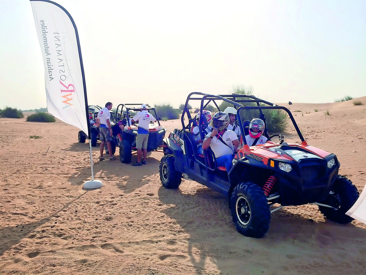 Young Qatari drivers take part in a training session during the GCC Young Drivers Academy training programme, jointly organised by Federation Internationale De L’Automobile (FIA), Bahrain Motor Federation (BMF), Qatar Motor & Motorcycle Federation (QMMF) and the Automobile & Touring Club of UAE (ATCUAE) in Dubai, yesterday. Right: The group taking part in the training programme poses for a picture.