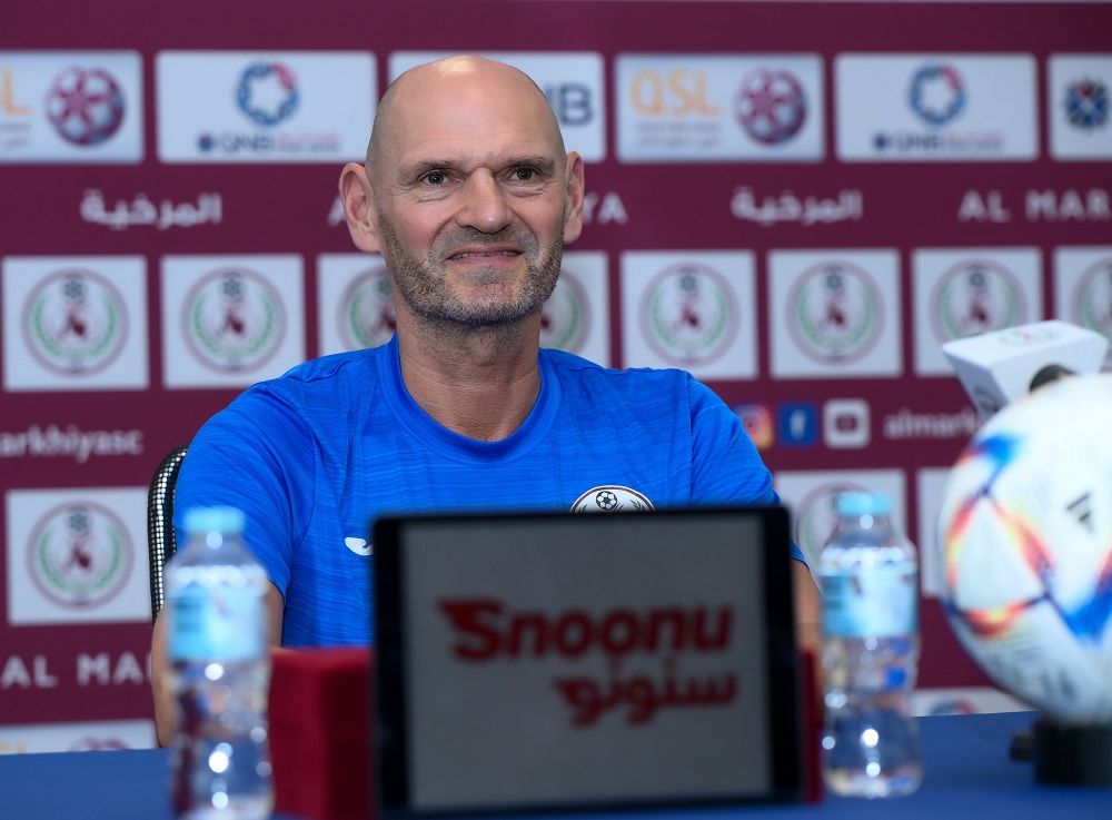 Al Markhiya assistant coach Henk Duut during a press conference.