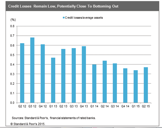 Growth in aggregate operating income for the GCC banks we studied dropped to 3 percent year on year from 6 percent year on year in 2014 and 10 percent in 2013. “Signs of weakness are evident in both interest income and noninterest income,” said Standard & Poor’s analyst Timucin Engin. “Simply put, the squeeze on interest margins has not yet eased. Low interest rates are returning less on bank assets, but funding costs are gradually increasing.” Non-interest income had partly offset the squeeze on interest margins, but also weakened.
