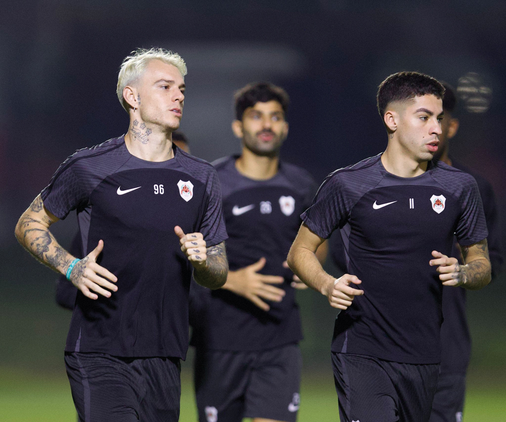 Al Duhail players in action during a training session ahead of today's Expo Stars League match against Al Rayyan.