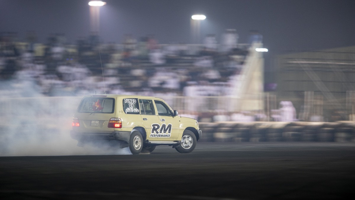 Action during the opening round of the Qatar Free-Style Drifting Championship.