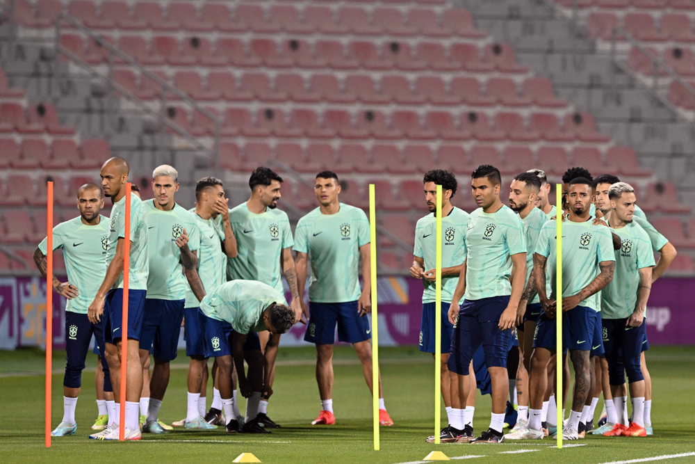 Brazilian players attend a training session at the Al Arabi Sports Club in Doha, yesterday. AFP
