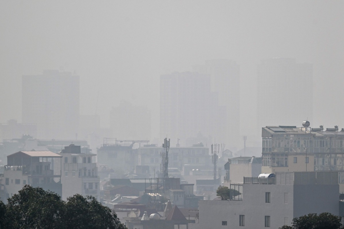 Residential buildings are shrouded behind heavy air pollution in Hanoi on January 3, 2025. Photo by Nhac NGUYEN / AFP