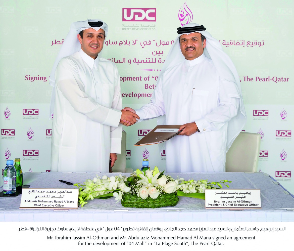 The agreement was signed by Ibrahim Jassim Al Othman, President & CEO of UDC and Abdulaziz Mohammed Hamad Al Mana, CEO of Mohammed Al Hamad Al Mana Group at an event held at the Oyster Building in The Pearl-Qatar, yesterday.