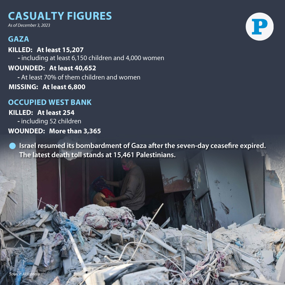 Meanwhile Israel has resumed its aggression against the Gaza Strip and launched over 400 military strikes since the end of the seven-day humanitarian pause on Friday, December 1, 2023.