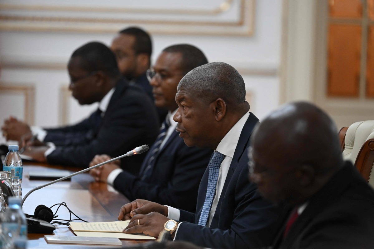 Angola President Joao Lourenco (2nd R) speaks during his bilateral meeting with US President Joe Biden (unseen) at the Presidential Palace in Luanda on December 3, 2024. (Photo by ANDREW CABALLERO-REYNOLDS / AFP)