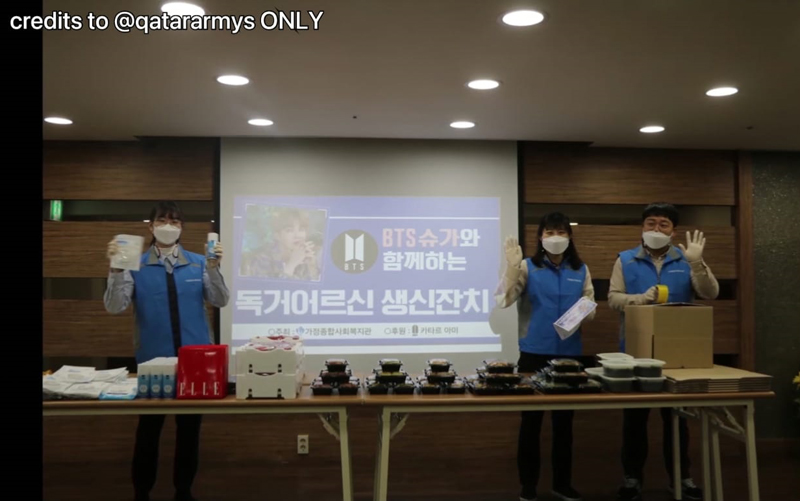 The heart-warming surprise event was filled with tears of joy, birthday greeting songs and words of gratitude from the elderly people living alone in Daegu. The Gajung Community Welfare Center also expressed their thanks towards Qatar ARMYs for initiating the project in dedication to BTS member, Suga's birthday.