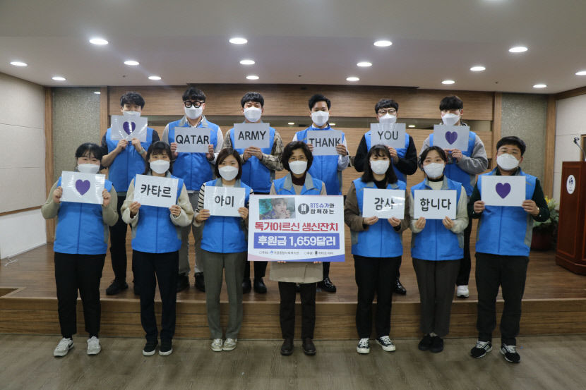 In the third week of March, fifteen elderly people living alone in Daegu were surprised with nutritious meals, fruits, cakes and bouquets which were safely delivered to their respective houses. On its official Youtube channel, Qatar ARMYs shared how the meals and gifts were prepared and delivered by The Gajung Community Welfare Center.