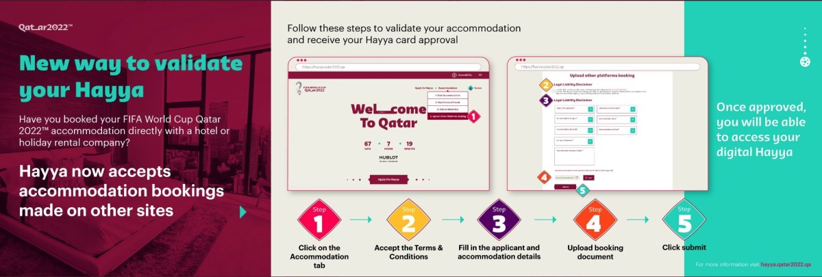 Doha: The Supreme Committee for Delivery and Legacy (SC) on Tuesday introduced a new option to validate the Hayya Card for those who are planning to stay with their family or friends during the FIFA World Cup in Qatar.