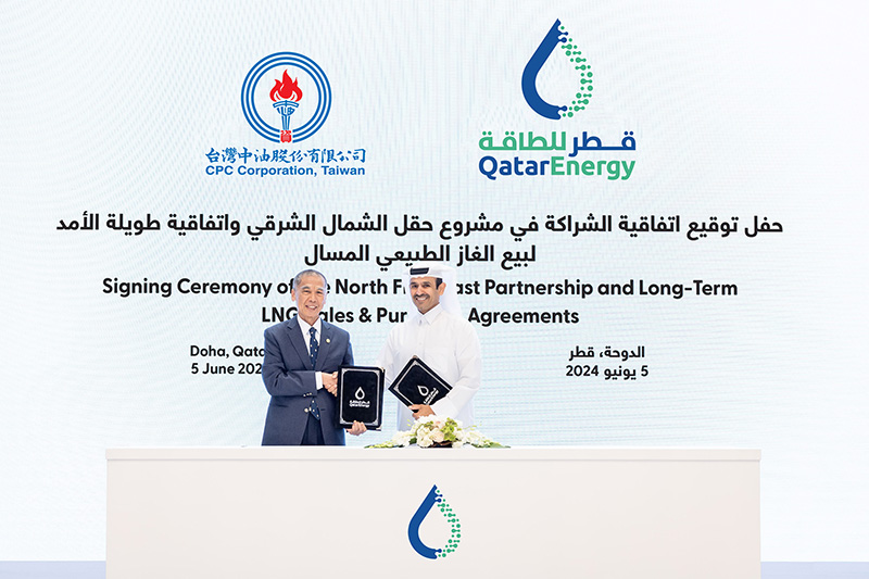 Doha, Qatar :QatarEnergy signed definitive agreements with CPC Corporation, Taiwan (CPC) covering the long-term supply of LNG to CPC and partnership in the North Field East LNG expansion project (NFE).