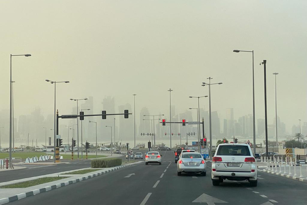 Doha: Some areas in Qatar were enveloped in dust with strong downward wind. This caused noticeable drop in visibility and Qatar Meteorology Department (QMD) cautioned everyone to be careful.