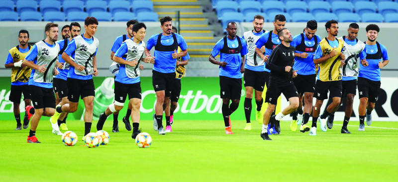 Al Duhail skipper Youssef Msakni and team-mates taking part in a training session at the Al Janoub Stadium yesterday, on the eve of their AFC Champions League Round of 16 clash against