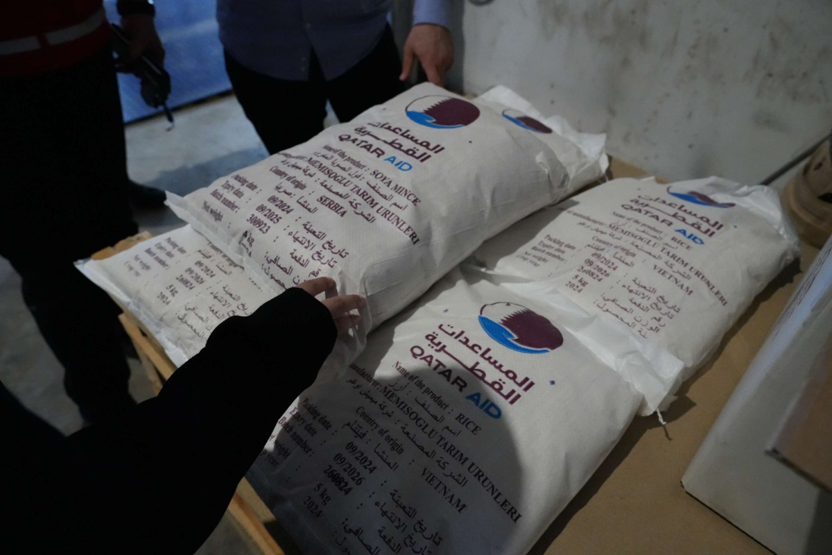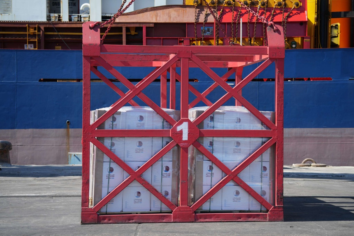 This food aid complements the State of Qatar's relief efforts via an air bridge established some weeks ago, with a total load of around 180 tons, equivalent to 5,500 food baskets.