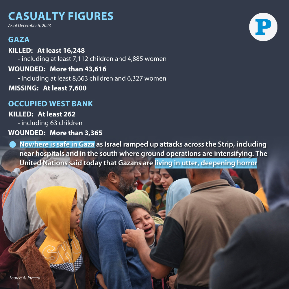 Doha, Qatar: Israel ramps up bombardment across central and southern Gaza, with dozens reported killed in an Israeli attack on homes in Deir el-Balah. The death toll in Gaza has reached 16,248 since October 7.