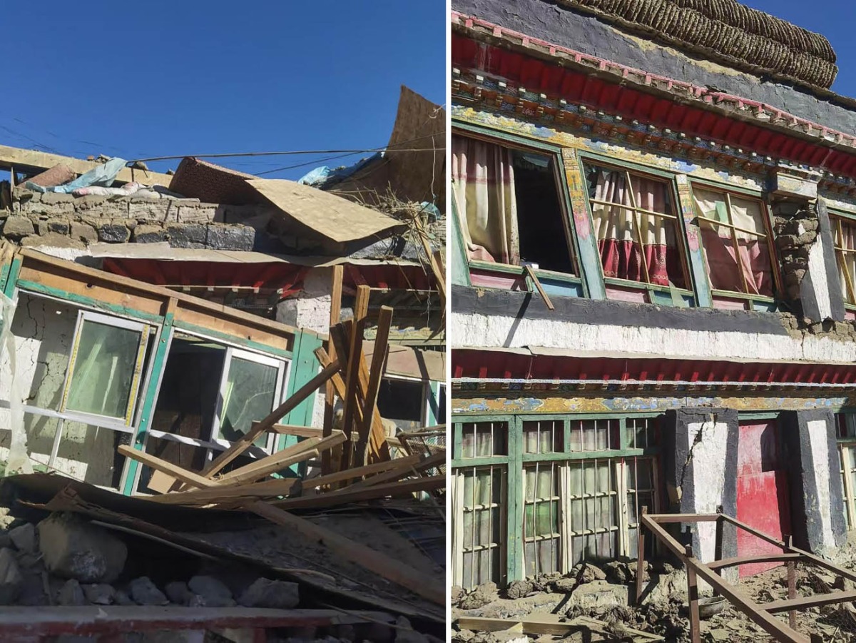 This handout received on January 7, 2025 shows damaged houses in Shigatse, southwestern China's Tibet region. (Photo by AFP)