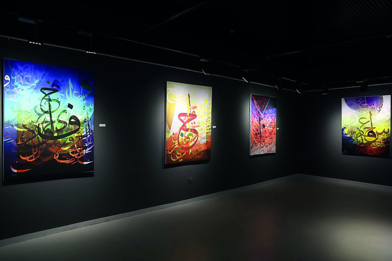 The exhibition focuses on the beauty of Arabic calligraphy art and how letters and words can be combined to form an expressive artwork.