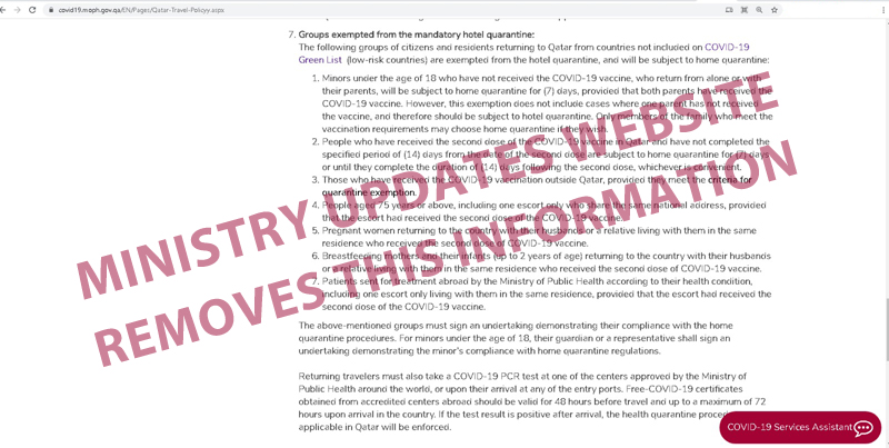 Doha: According to the Ministry of Public Health (MoPH) website some people, coming from countries which are not in the green list, are allowed exemption from hotel quarantine, provided they belong to one of the groups specified by the ministry.