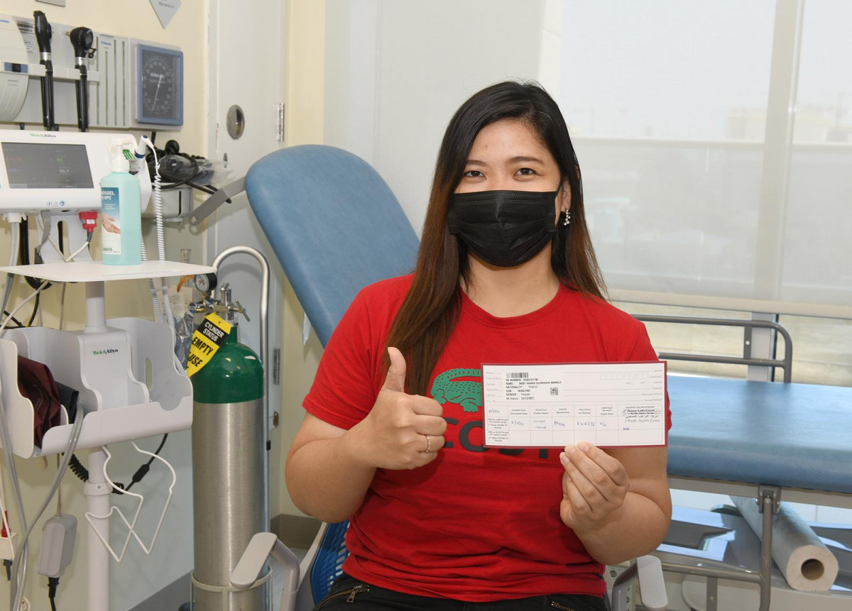 Doha: Baby Manalo, a 42-year-old Filipino resident of Qatar, today visited Al Waab Health Center and received the one millionth COVID-19 vaccine dose to be administered since the start of the National COVID-19 Vaccination Program.