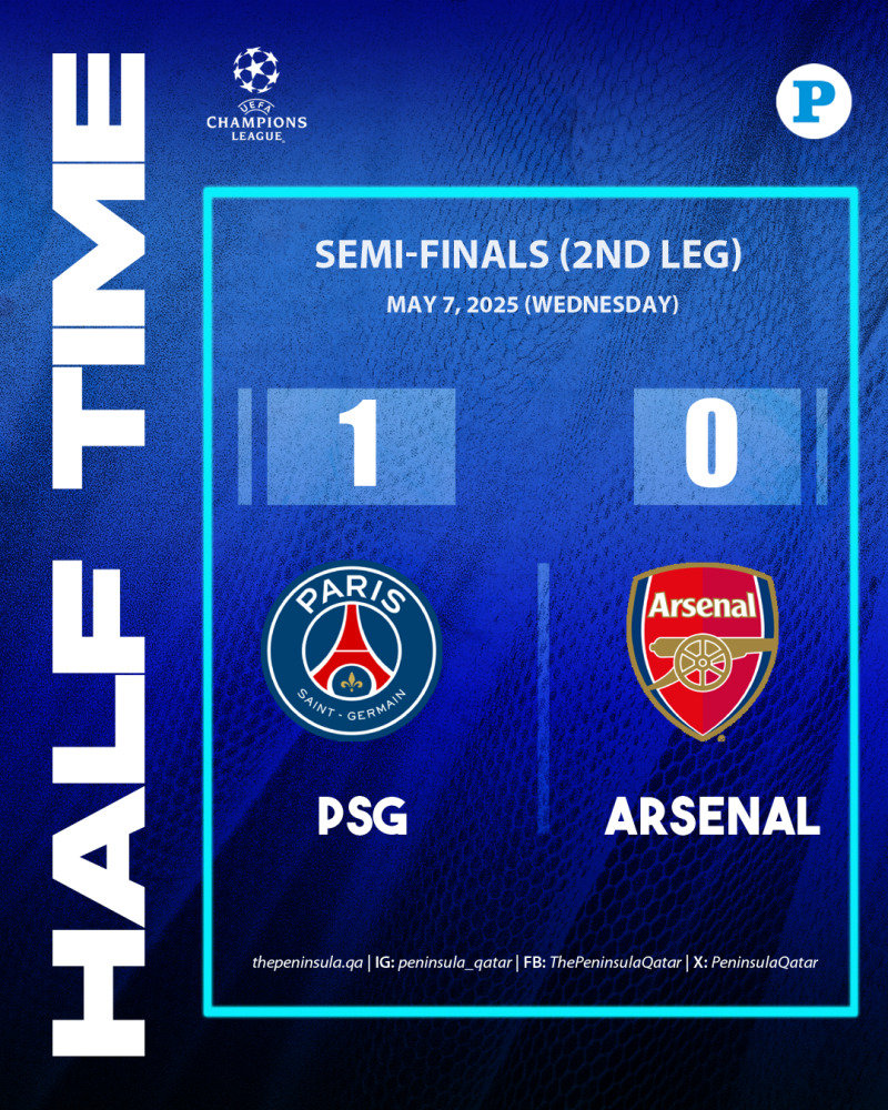 Paris: The French capital is set to host a thrilling second-leg match of the UEFA Champions League semi-final tonight, as Paris Saint-Germain (PSG) welcomes Arsenal at Parc des Princes. The winner will face Inter Milan in the dream final in Munich.