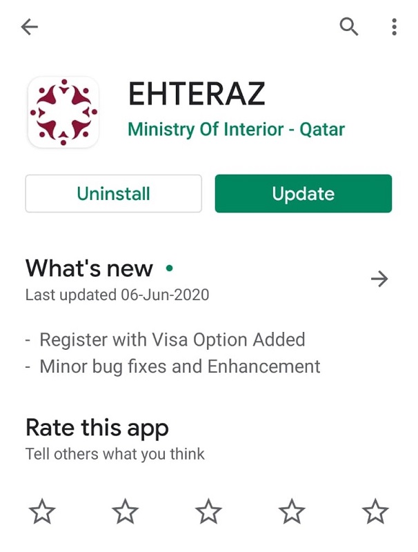 Doha: Ehteraz, the Covid-19 tracking app, has got a new update on android play store. The app now allows people without QID to register using their Visa number.