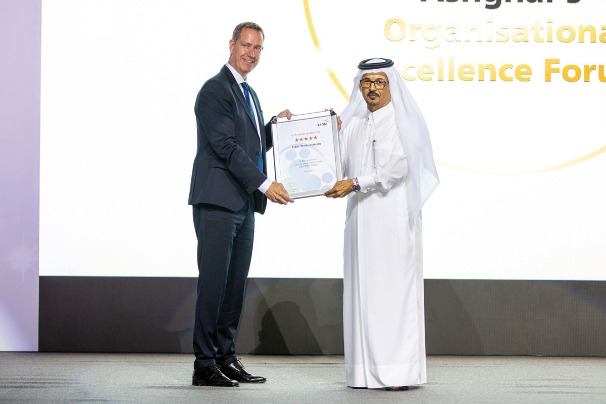 During the forum, Ashghal also received 5-Star Certificate of Excellence from CEO of the European Foundation for Quality Management (EFQM), Russell Longmuir for the authority’s compliance with the standards of the improved EFQM excellence model.