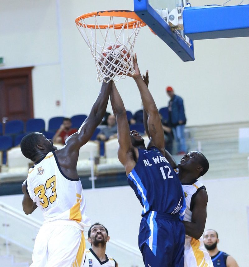 An Al Wakrah player attempts to score against Qatar SC in yesterday's other match. Al Wakrah won the match 98-59.