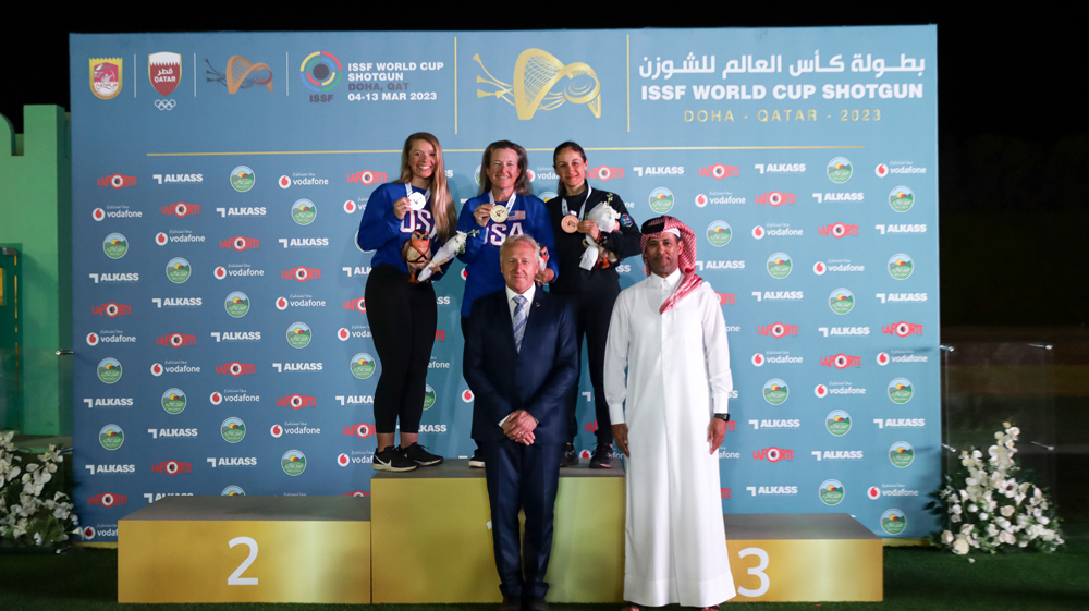 International Shooting Sport Federation (ISSF) Secretary-General Willi Grill, Qatar Shooting & Archery Association (QSAA) President Mishaal Ibrahim Al Nasr and QSAA Executive Director Jassim Shaheen Al Sulaiti presented the medals to the podium winners.