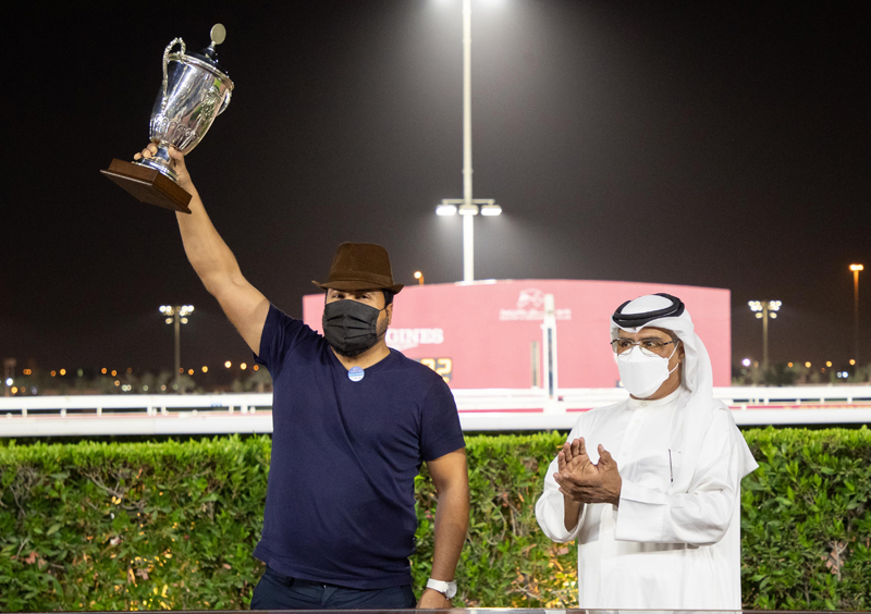 QREC Racing Manager Abdulla Rashid Al Kubaisi presented the winner's trophy to Mrs Subaiya's representative.