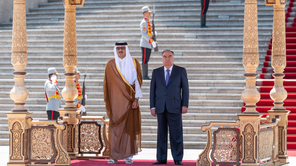 Dushanbe: The Amir HH Sheikh Tamim bin Hamad Al-Thani was accorded on Thursday an official reception ceremony upon his arrival at the Palace of the Nation in the Tajik capital, Dushanbe.