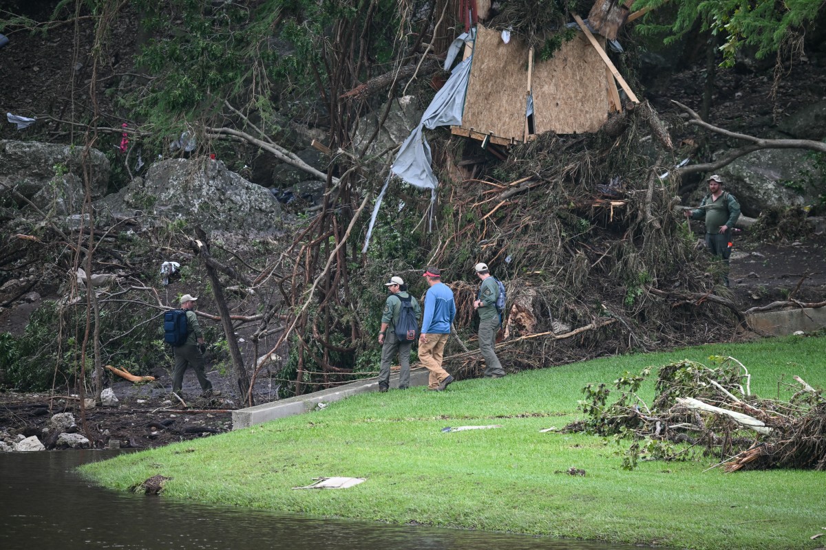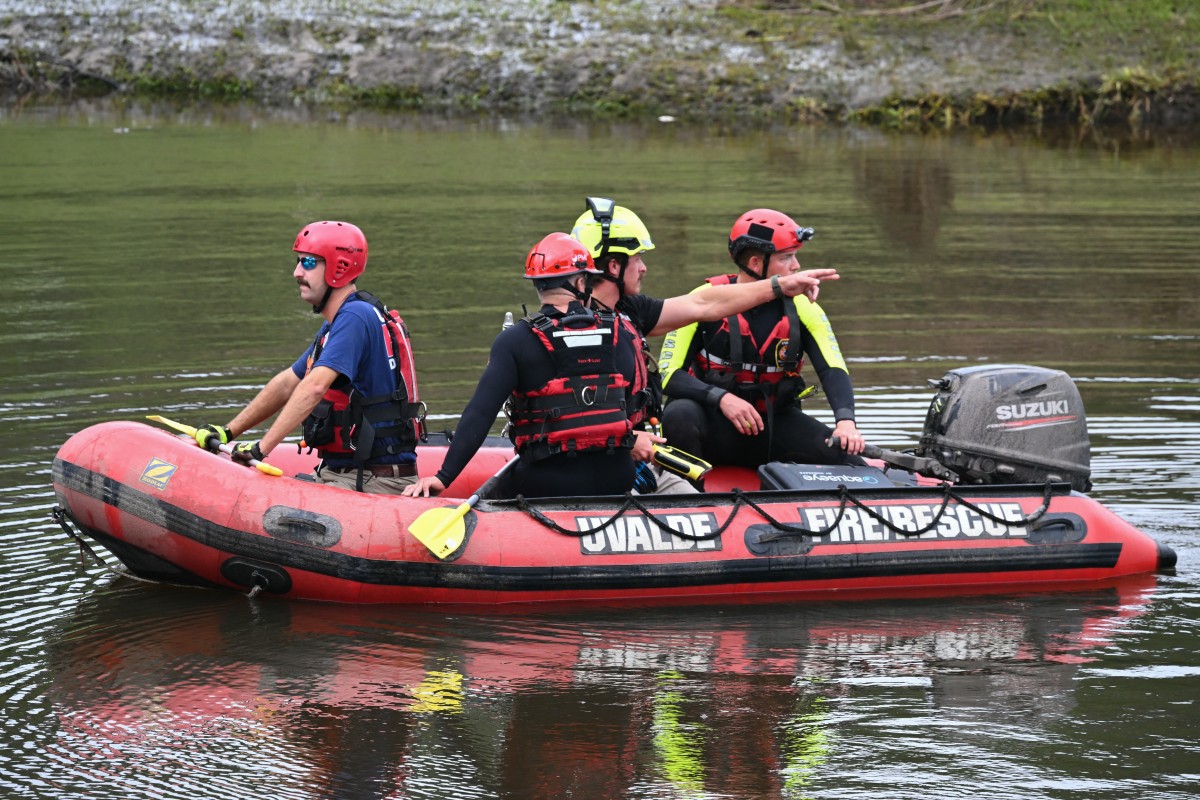 A search and rescue team looks for people along the Guadalupe River near Camp Mystic in Hunt, Texas, on July 7, 2025, following severe flash flooding that occurred during the July 4 holiday weekend. Photo by Ronaldo Schemidt/AFP