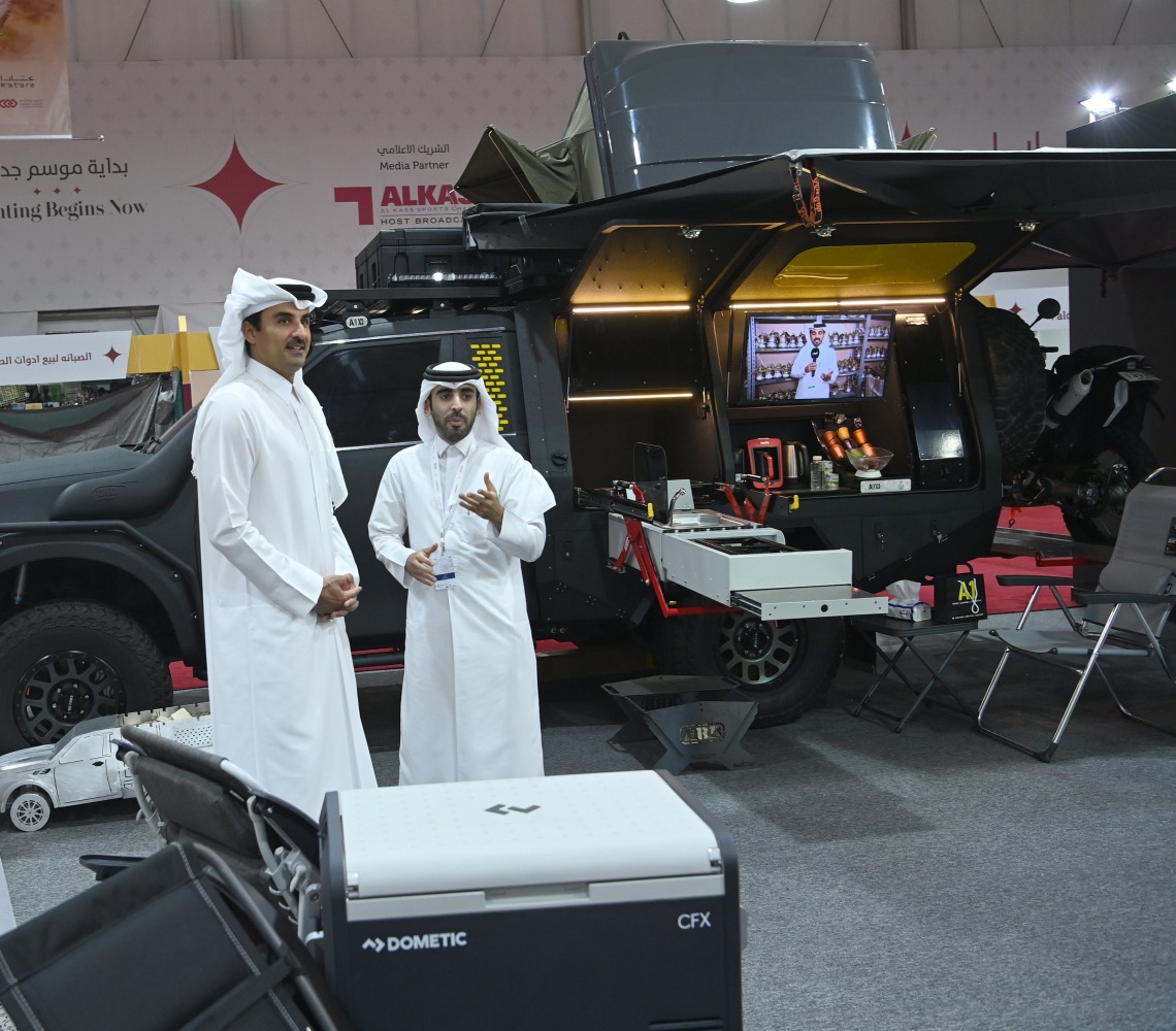 HH the Amir toured the pavilions of local, regional, and international companies exhibiting falcons, sniping supplies, the latest types of rifles, and trips equipment.