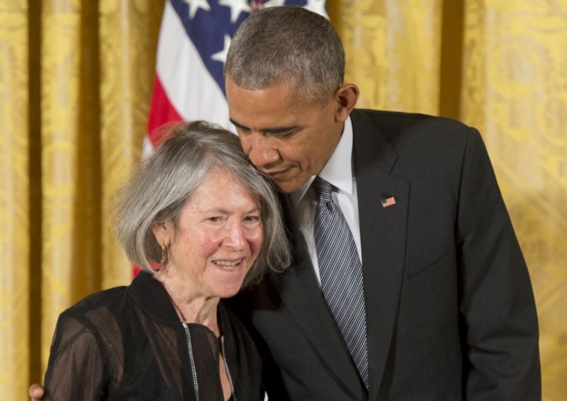 File photo taken on September 22, 2016 shows then US President Barack Obama presenting poet Louise Gluck with the 2015 National Humanities Medal during a ceremony in the East Room of the White House in Washington, DC. AFP / Saul Loeb