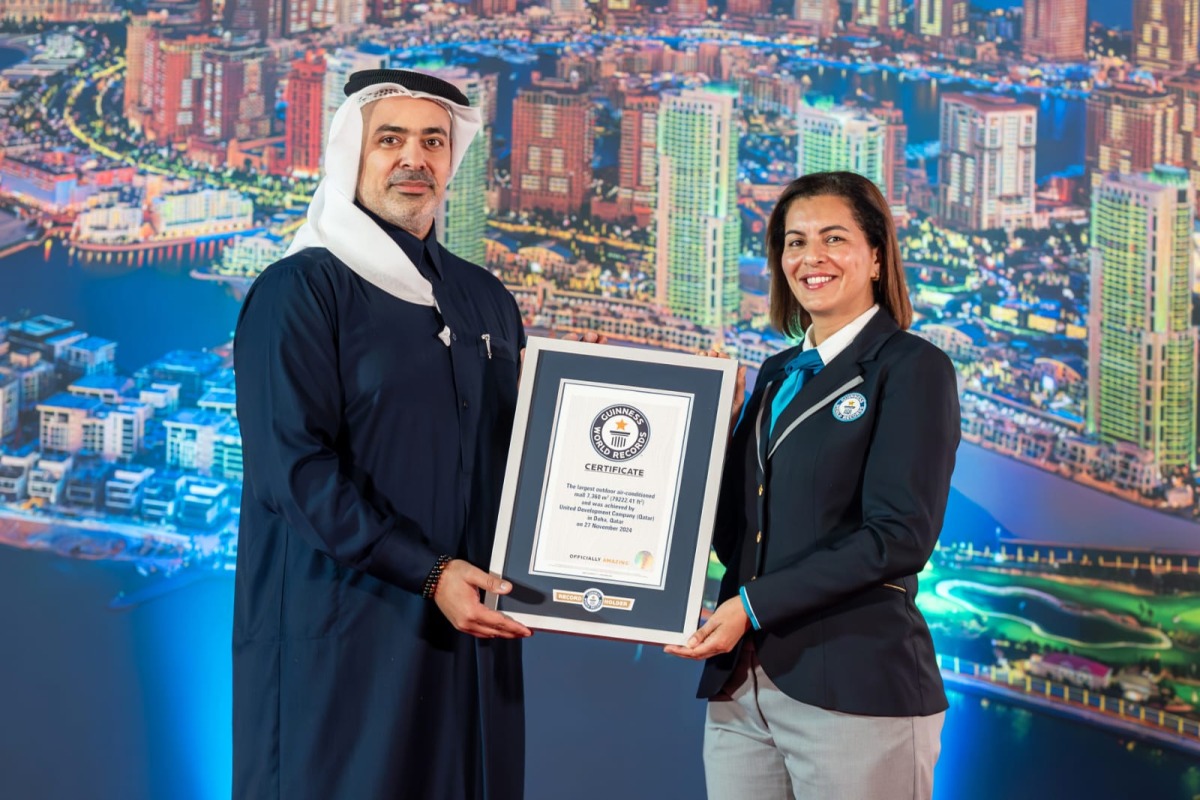 During an official ceremony, Yasser Salah Al-Jaidah, CEO of United Development Company, received the Guinness World Record certificates in recognition of these milestones, which include the largest outdoor air-conditioned shopping mall, Largest outdoor interactive lighting canopy, located on Gewan Island, and Largest pneumatic waste management network on the Pearl Island.
