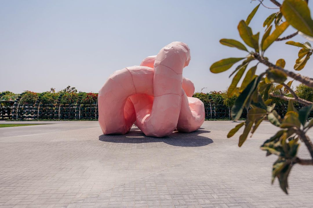 The massive laquered aluminium sculpture is adorned in bright pink hues and constructed in a convoluted shape, one that exudes an unmissable presence and certainly invites camera clicks.