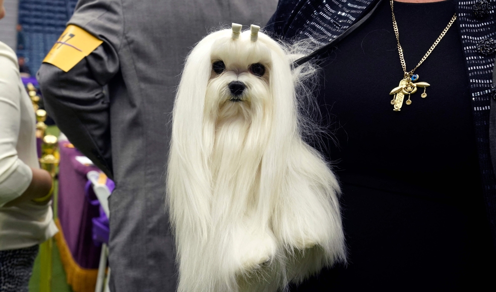 A Maltese in the judging area during the Annual Westminster Kennel Club Dog Show judging of Hound, Toy, Non-Sporting and Herding breeds and Junior Showmanship at the Arthur Ashe Stadium in New York City on May 8, 2023. (Photo by TIMOTHY A. CLARY / AFP)