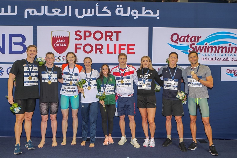 Morozov, who is set to lift the men’s overall World Cup trophy today, first completed a clean sweep of all 7 titles in 50m backstroke, winning the event in 24.75m. The Russian then claimed victory in 100m freestyle to complete his ‘target’ of three gold medals in Doha.