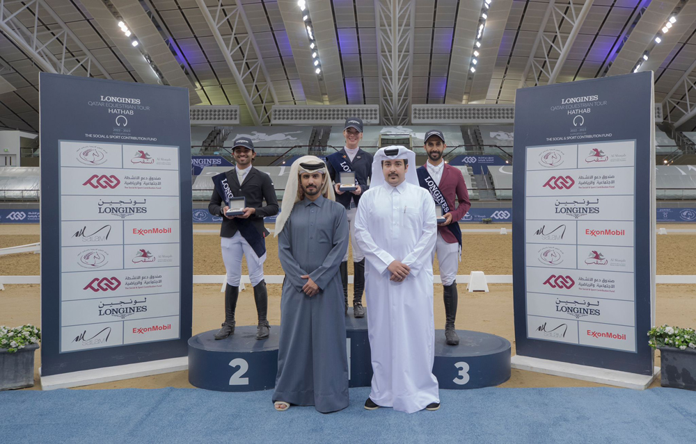 Maryam Ahmed Alsemaitt and Azade Apa Triolet clinched top honours in the dressage competitions on the opening day of the 10th round of the Longines Hathab Qatar Equestrian Tour at Al Shaqab, yesterday.
