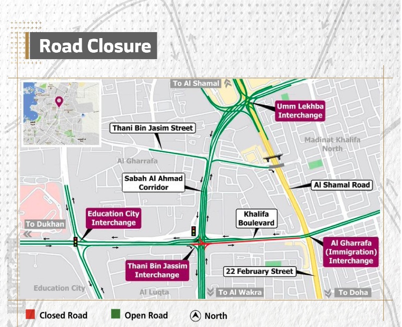 It also said that there will be temporary closure on Khalifa Street between Thani Bin Jassim Intersection and Al-Gharafa (Passports) Intersection on Friday, March 11, 2022, from 2 am until 7 am and published a map showing alternative routes.