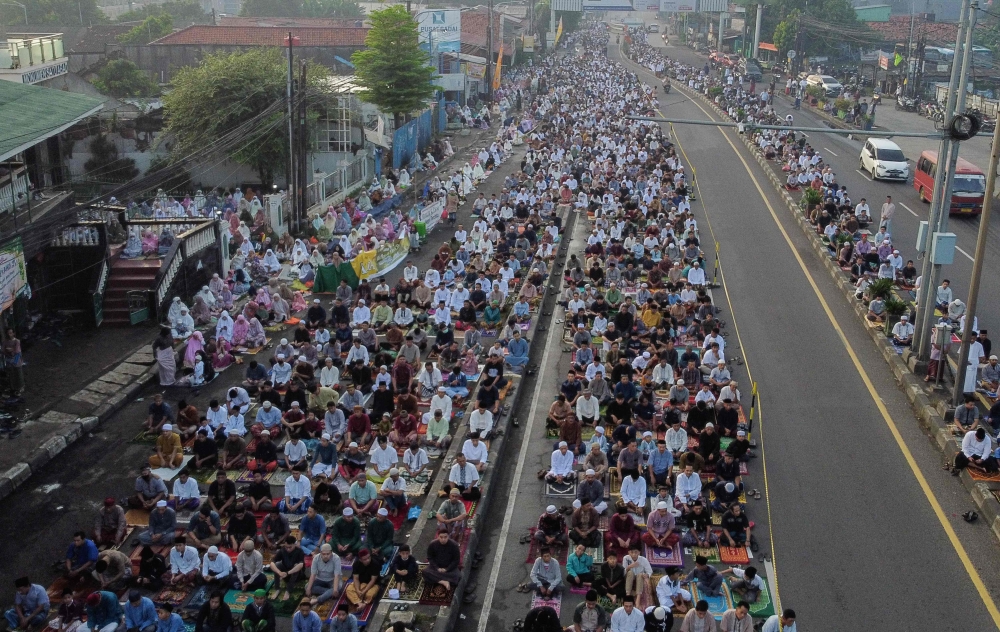 On Wednesday morning, Muslims joined communal prayers shoulder-to-shoulder on the streets and inside mosques. Jakarta’s Istiqlal Grand Mosque, the largest in Southeast Asia, was flooded with devotees offering the morning prayers.