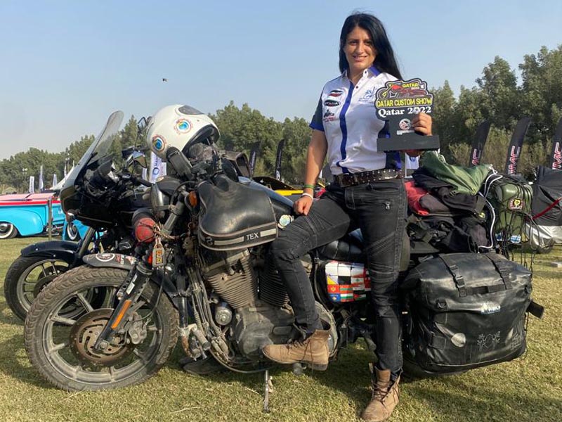 Axinte rode to Qatar on her bike to take part in the Qatar Custom Show (QCS). The QCS was a three-day event where motorheads experience the best of customized bikes and cars from all around the world.