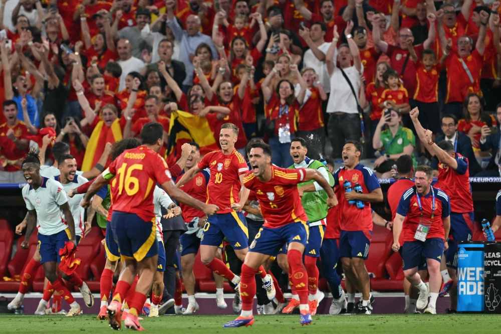Three-time champions Spain became the first team to win six games at a Euros and are one game away from a record-breaking fourth crown.
