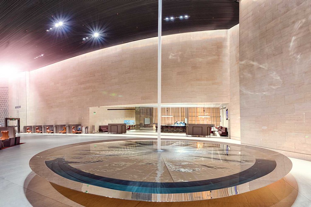 Located on Level 3 of Hamad International Airport, the Al Safwa First Lounge is an architectural masterpiece inspired by Doha’s Museum of Islamic Art. Its vast space, adorned with towering travertine stone walls and a mesmerizing central water feature, creates an atmosphere of serene grandeur.