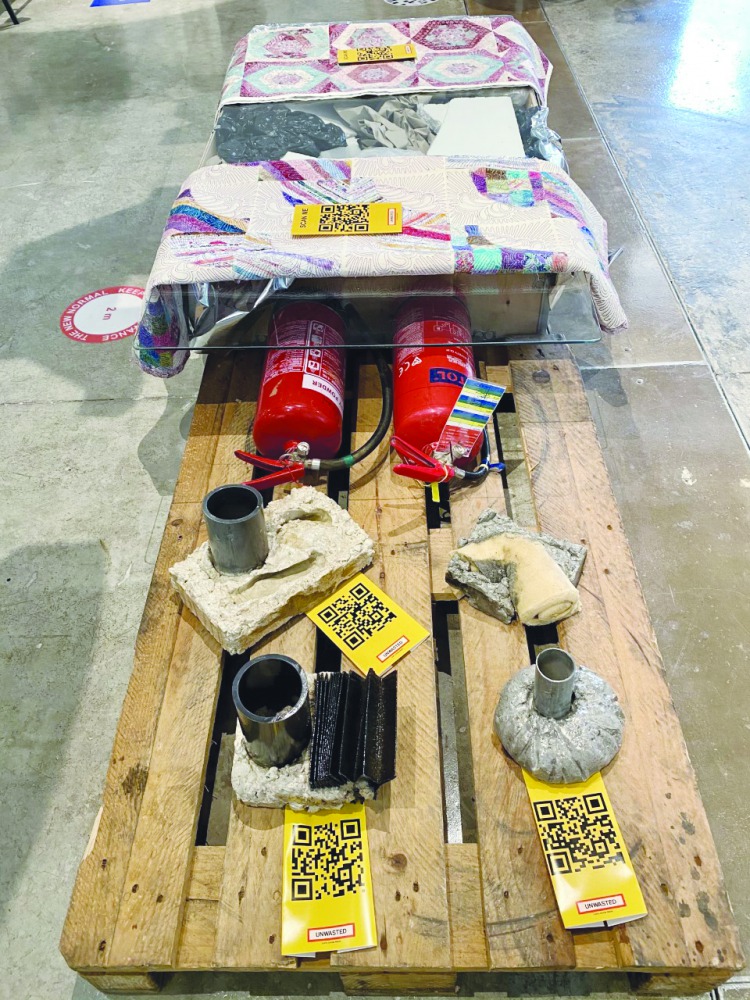 As visual art is a potent tool to convey an important message, the event contains this element in the form of an installation which depicts a massive quantity of discarded clothing and textile shaped like a collection of landfills. The exhibition, Al Mesnad said, is an artistic interpretation of the problem of waste meant to shock the viewer and create a reaction.