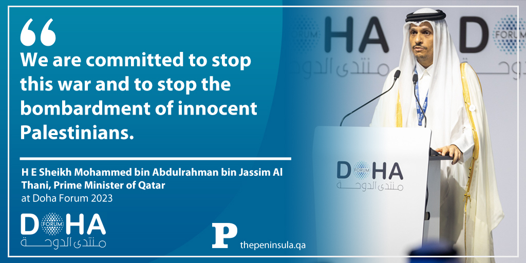 [7:55pm Doha Time] Palestinian Prime Minister said Israel must be held accountable for crimes, and must be prevented from violating international laws during a talk session today at Doha Forum 2023. Read more.