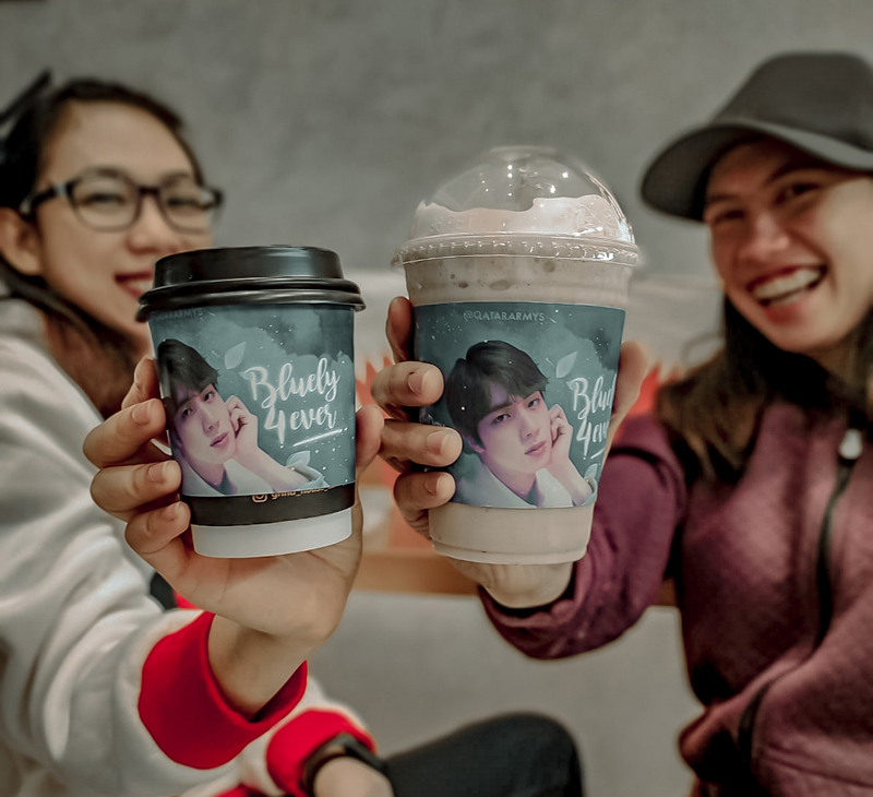 This includes charting BTS albums to #1 in Qatar iTunes and partnering with local cafes for cup sleeve projects. Its most recent one was in December last year, a partnership with Anime Café for a cup sleeve project dedicated to V's birthday, the second youngest member of the band.