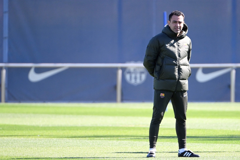 Barcelona's Spanish coach Xavi looks on during a training session on the eve of their UEFA Champions League last 16 second leg football match against SSC Napoli at the training center in Barcelona on March 11, 2024. (Photo by Josep LAGO / AFP)