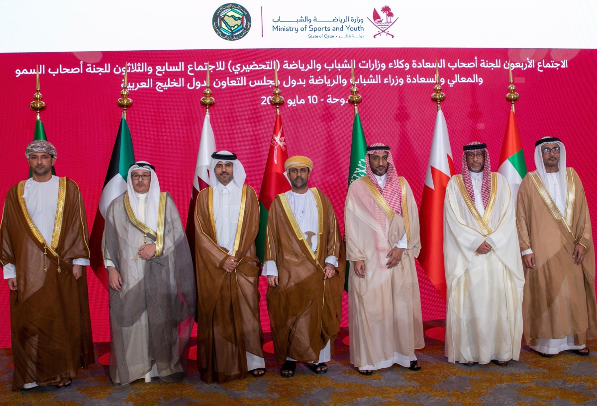 Their Excellencies the Undersecretaries of the Ministries of Youth and Sports in the GCC countries during the meeting in Doha yesterday.